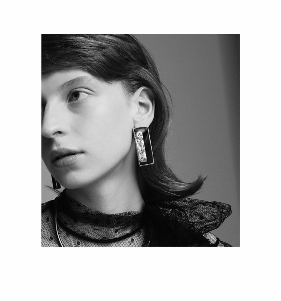 Realizzati a mano, con la loro forma rettangolare dal taglio pulito, mettono in risalto la geometria senza tempo. L’ampio elemento nero che sembra fluttuare al centro, aggiunge un fascino aggraziato a questo pezzo, mentre le foglie d’oro in 24k offrono il glam necessario. Sono l’accessorio ideale per aggiungere un tocco chic a qualsiasi look.