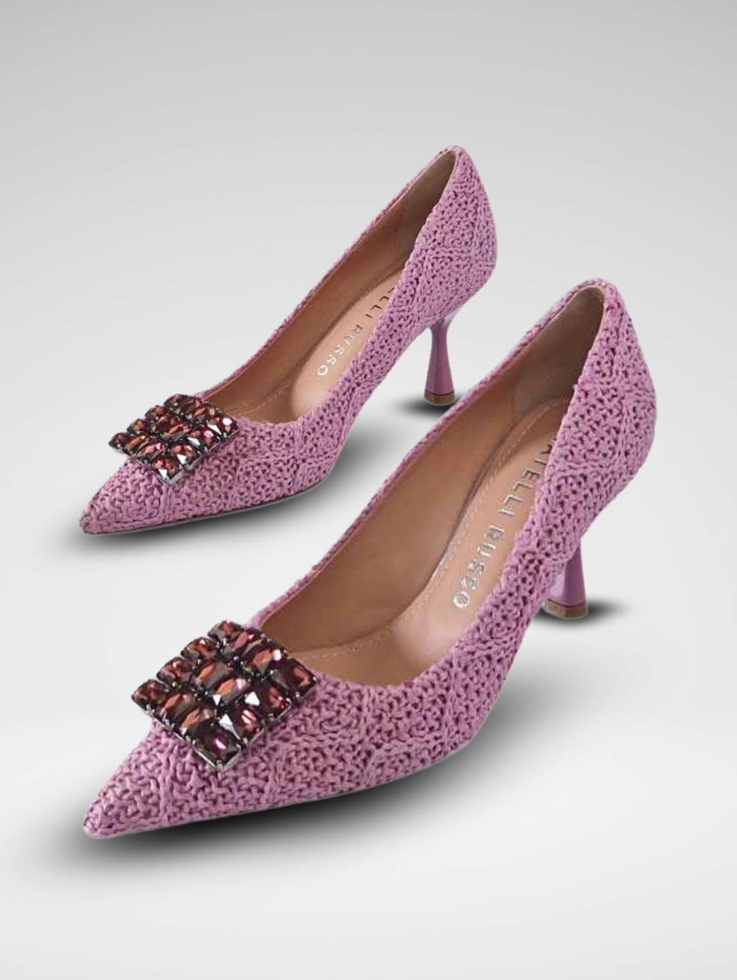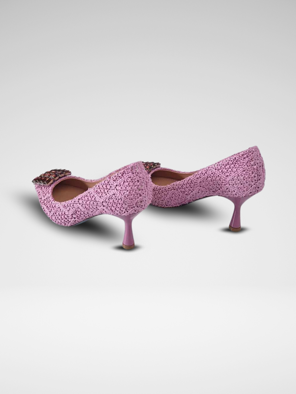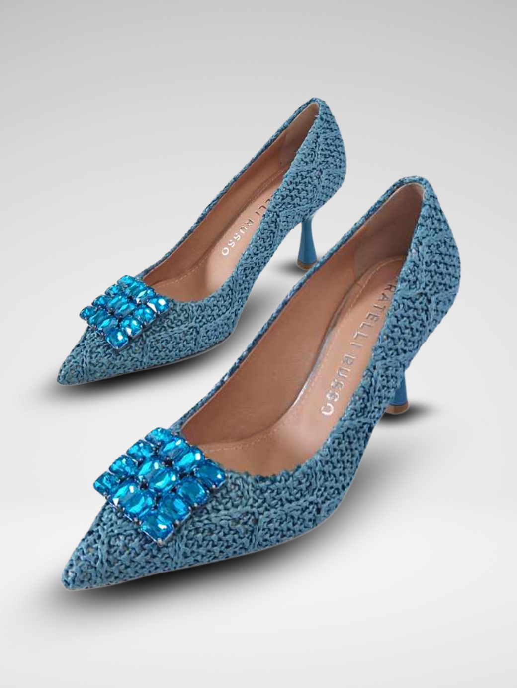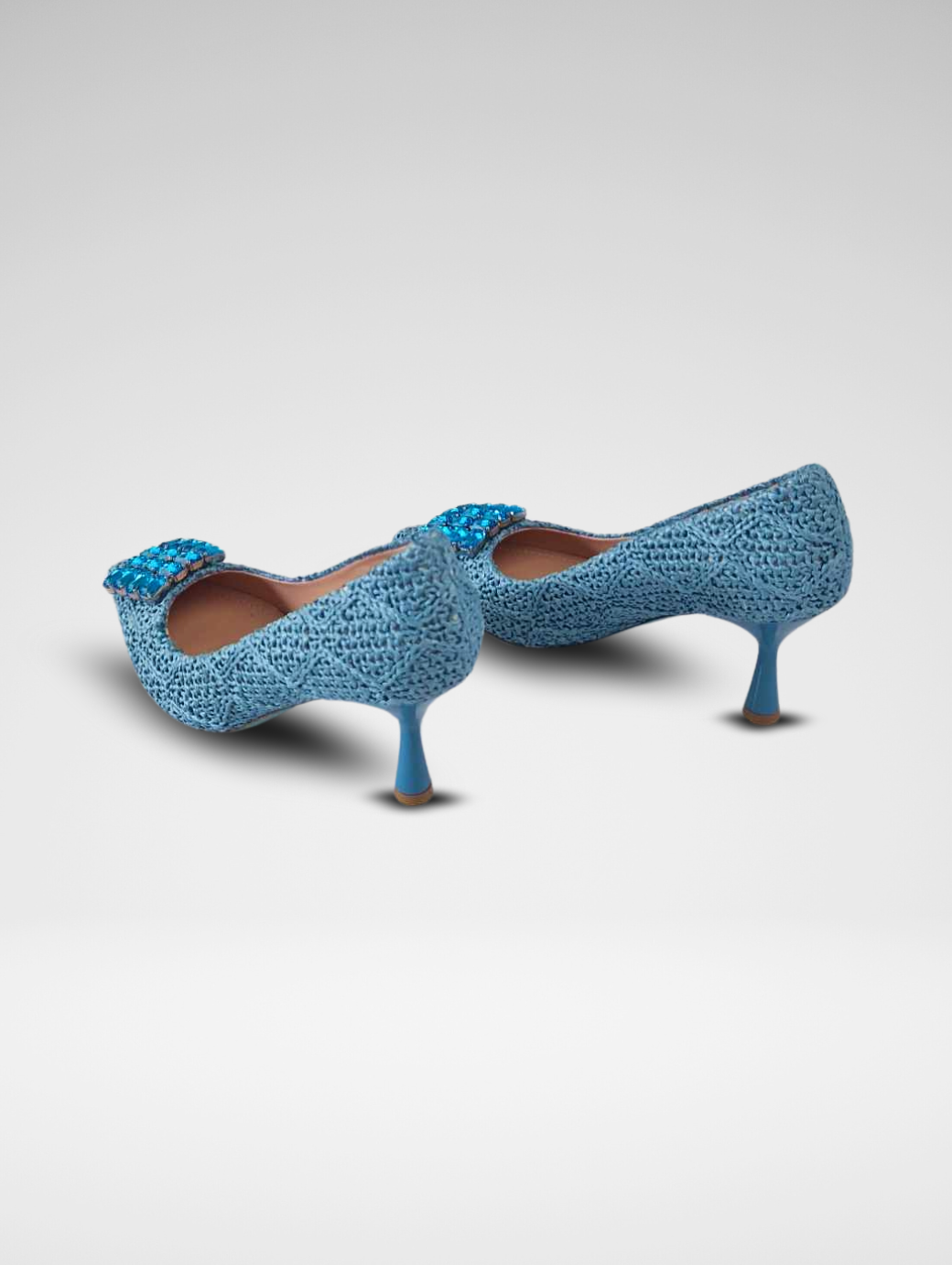 Decolletè in cotone gros-grain disponibile nelle varianti azzurro e rosa