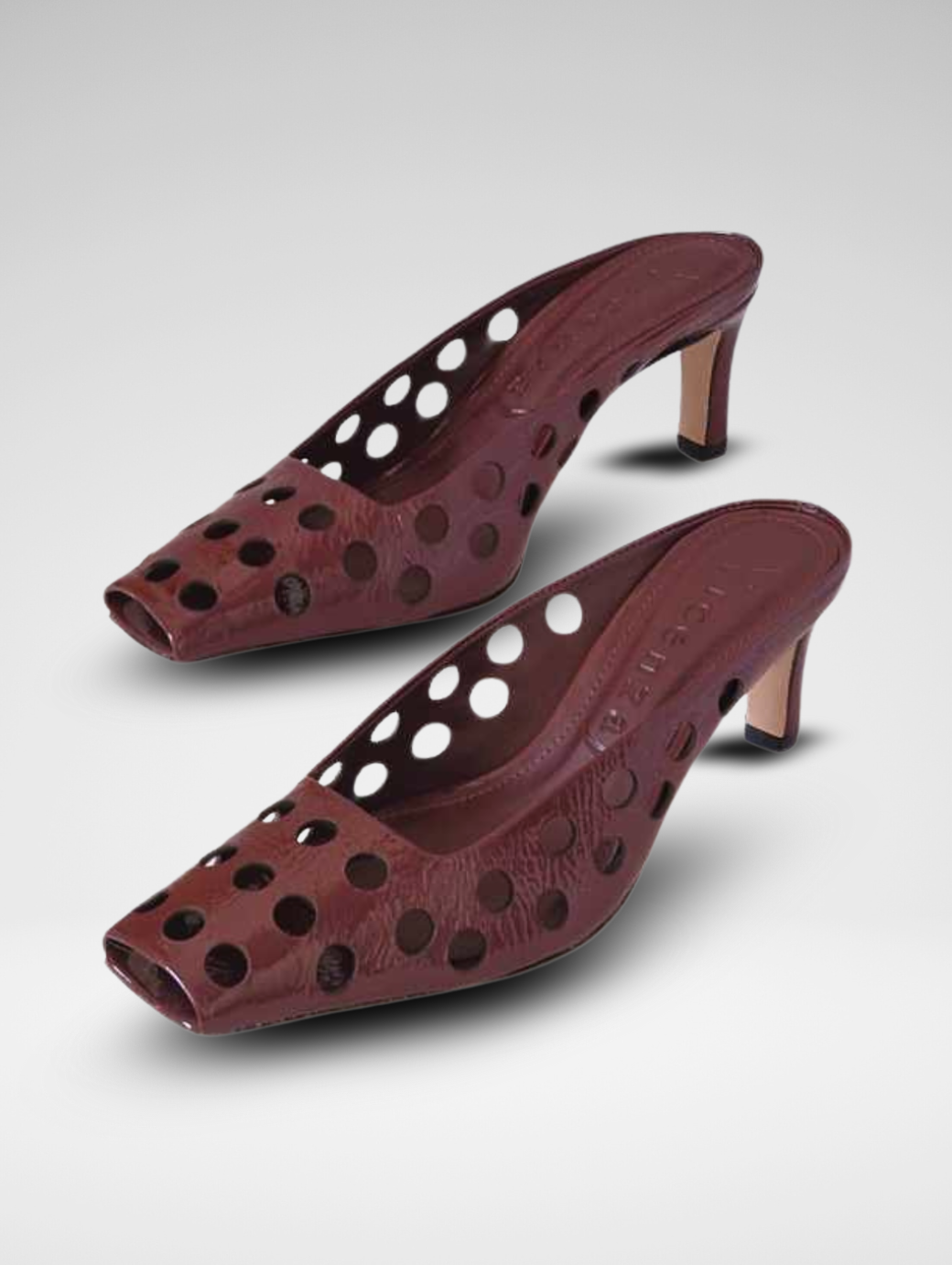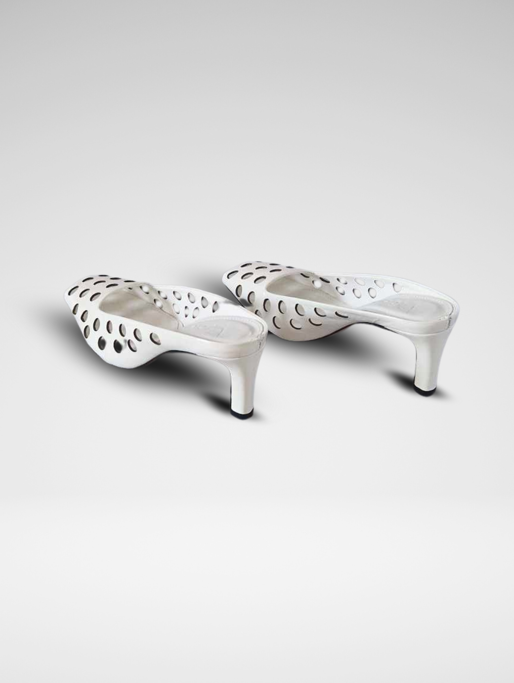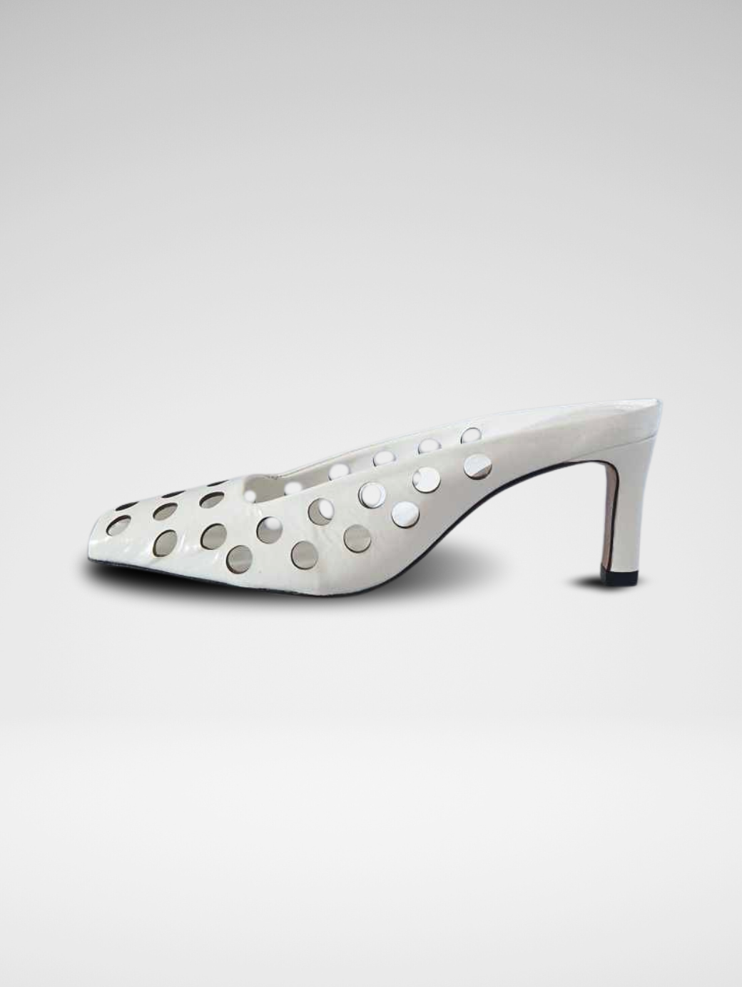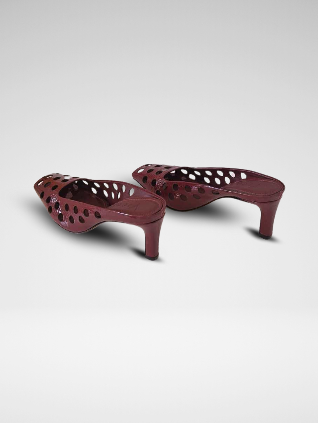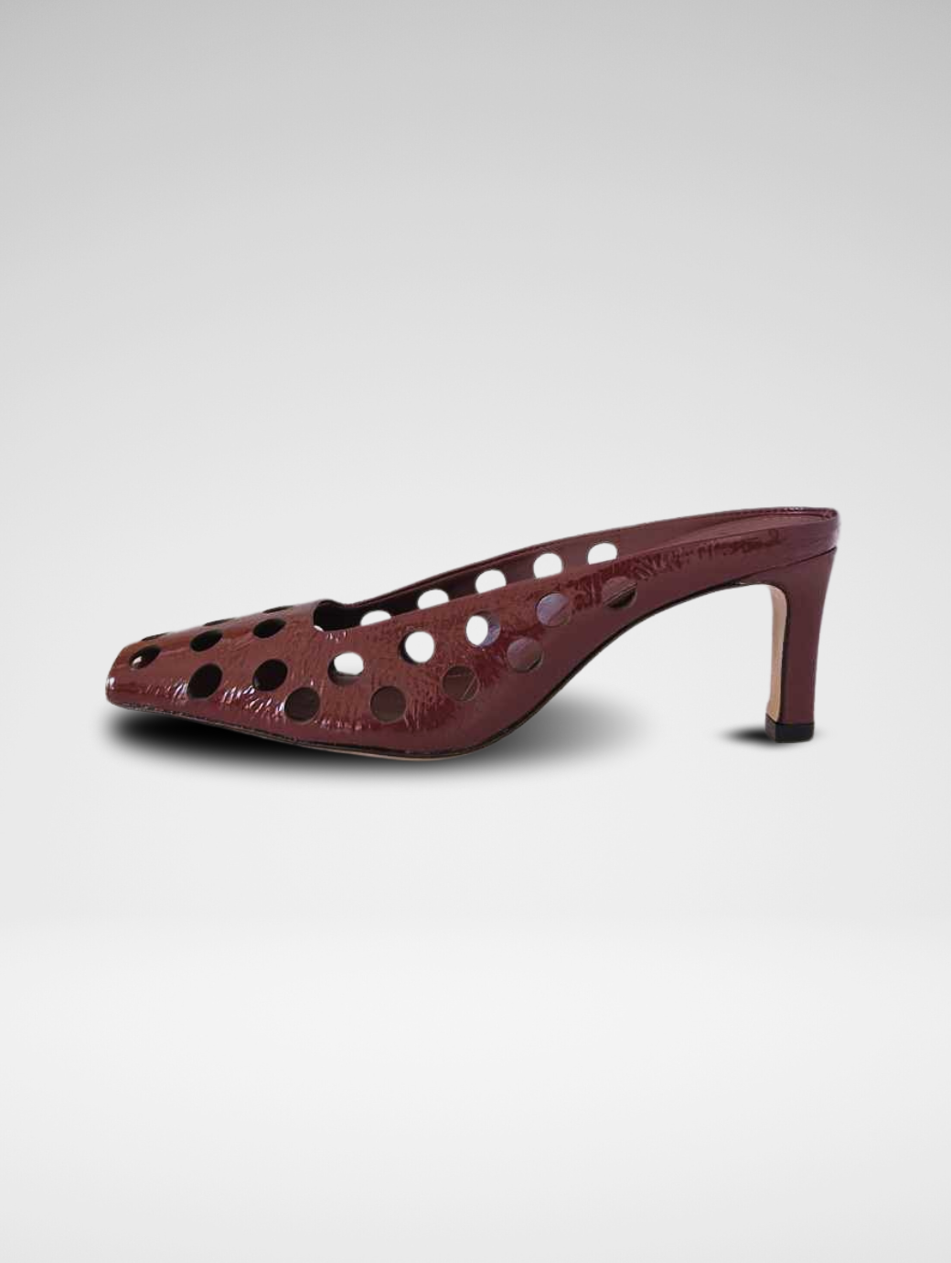 Mules traforato in verlux disponibile nelle varianti bianco e bordeaux