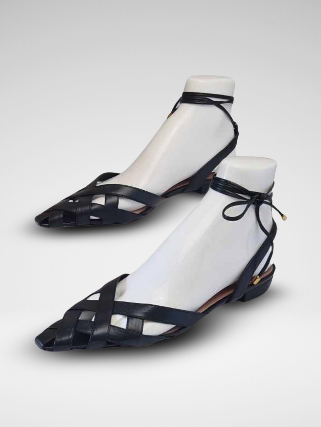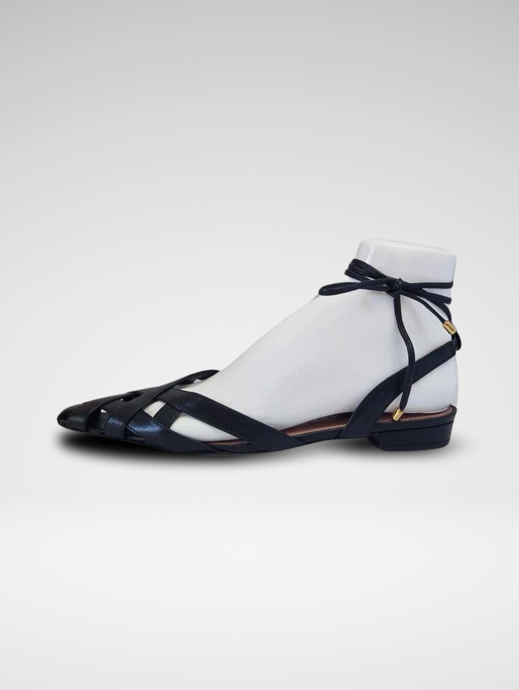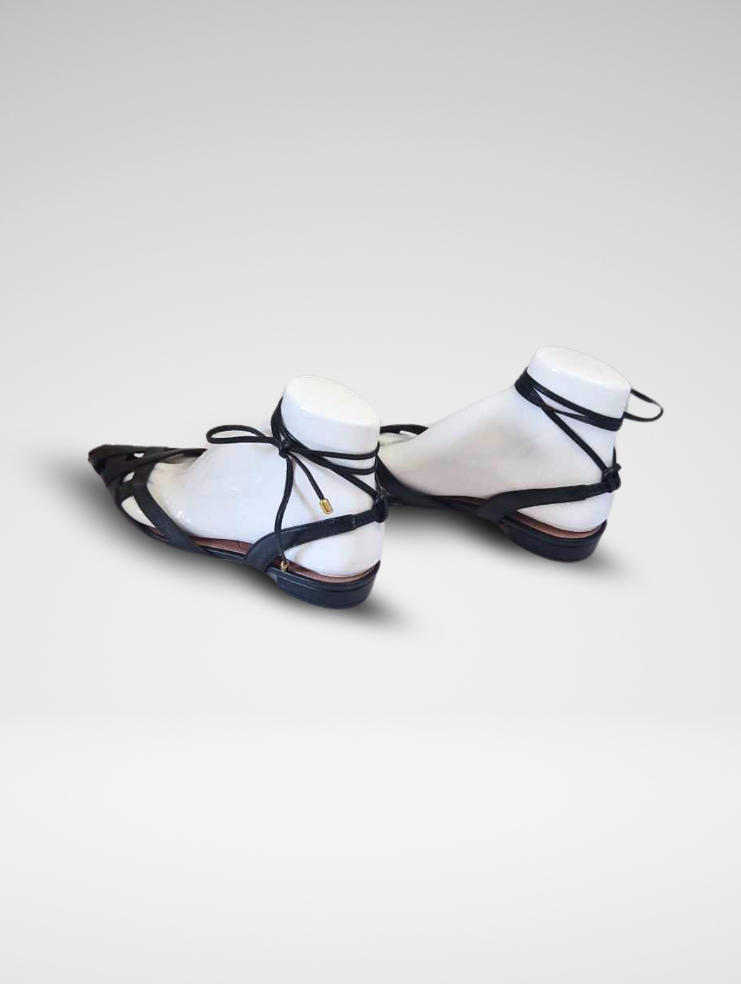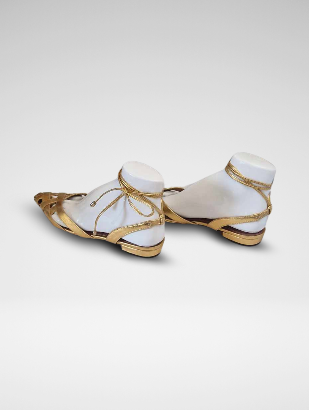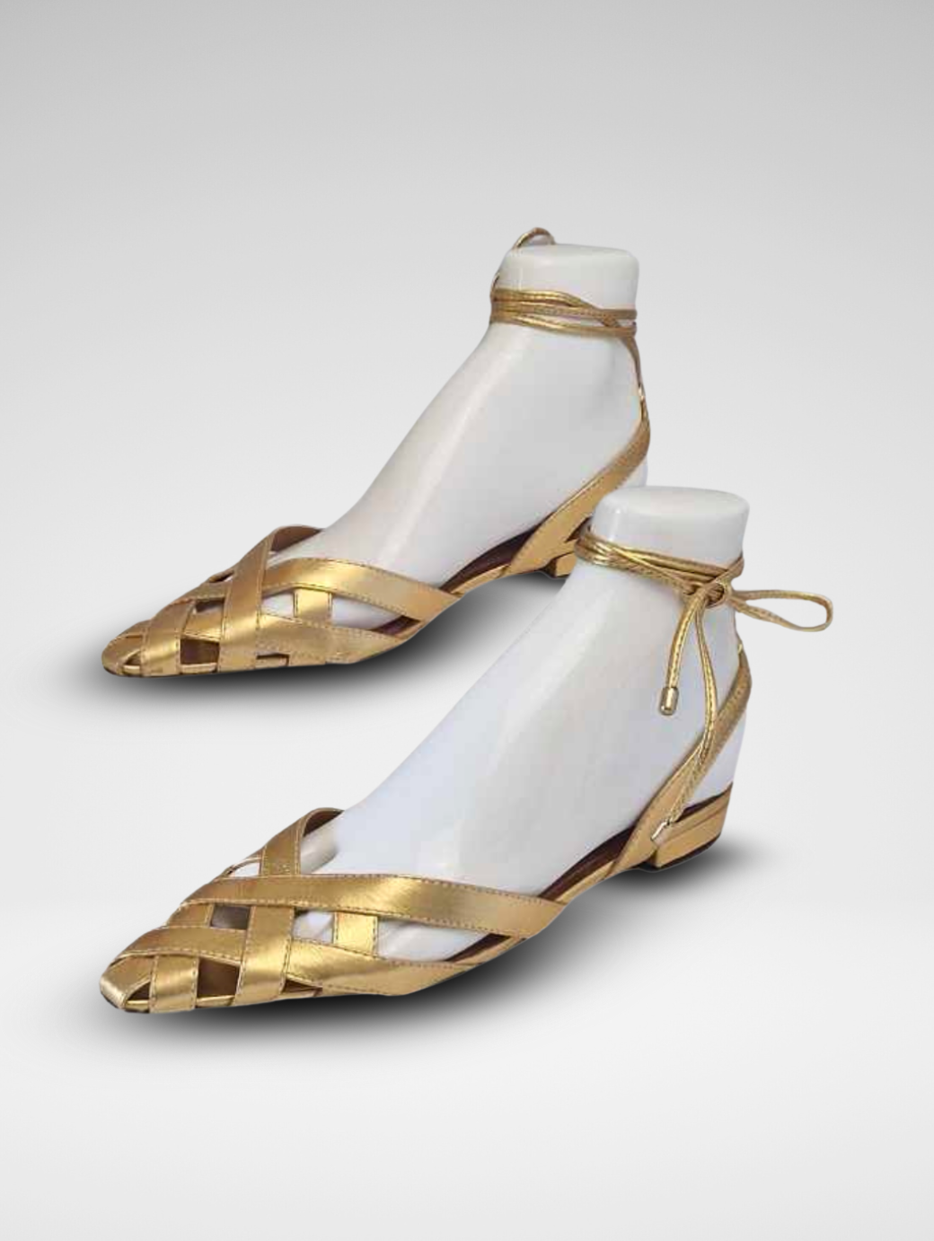 Sandali a canestro con lacci disponibili nelle varianti oro e nero